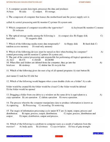 15. The stages of information processing cycle under ICT are A) input, output, process and
