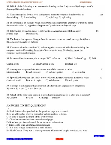 36. In an email environment, the acronym BCC refers to A) Bland Carbon Copy B) Bulk