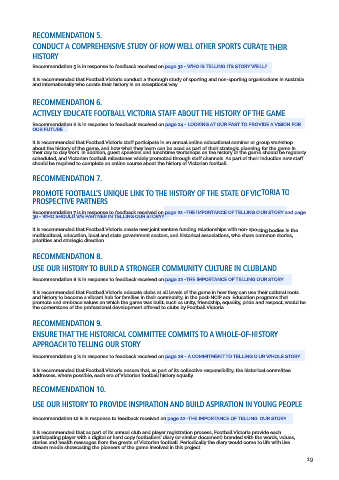 Recommendation 9 is in response to feedback received on page 28 - A COMMITMENT TO TELLING OUR WHOLE STORY.