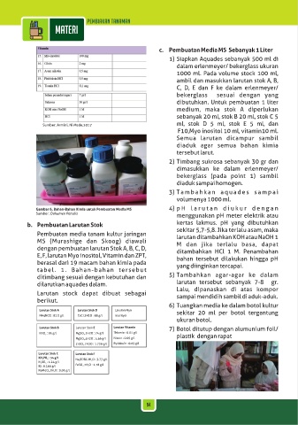 MS (Murashige dan Skoog) diawali M dan jika terlalu basa, dapat