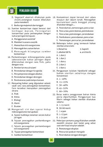D. Vegetatif alamiah dilakukan pada 19. Kontaminasi dapat berasal dari udara