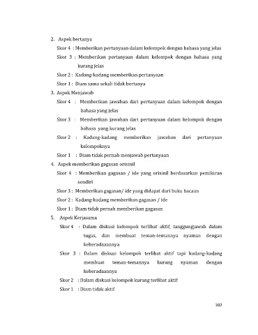 Skor 4 : Memberikan jawaban dari pertanyaan dalam kelompok dengan