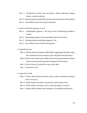 Skor 4 : Dalam diskusi kelompok terlibat aktif, tanggungjawab dalam tugas,
