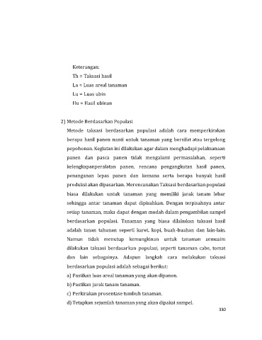 berdasarkan populasi. Tanaman yang biasa dilakukan taksasi hasil