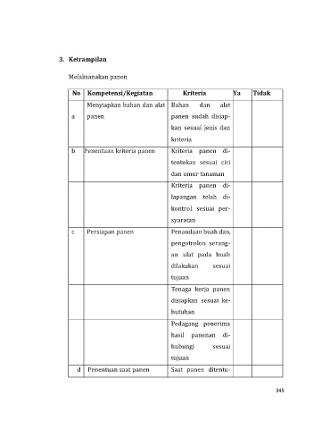 No Kompetensi/Kegiatan Kriteria Ya Tidak