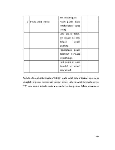 “YA” pada semua kriteria, maka anda sudah berkompetensi dalam pemanenan