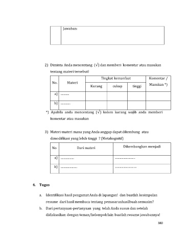 2) Diminta Anda mencentang (√) dan memberi komentar atau masukan