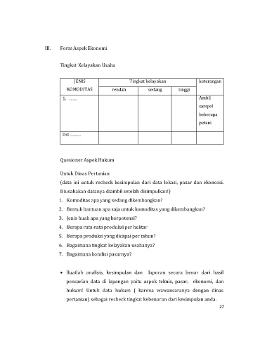 pencarian data di lapangan yaitu aspek teknis, pasar, ekonomi, dan