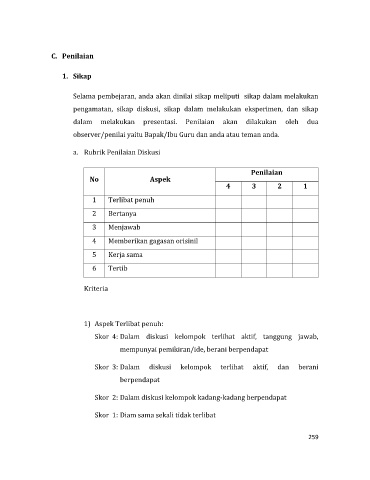 pengamatan, sikap diskusi, sikap dalam melakukan eksperimen, dan sikap