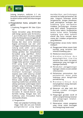 Pada saat populasi kumbang cylas i) Menerapkan sistem pengairan