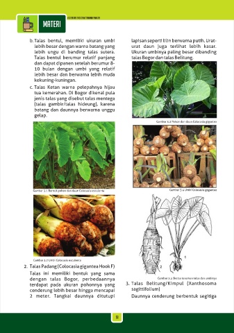 b. Talas bentul, memiliki ukuran umbi lapisan seperti lilin berwarna putih. Urat-