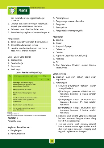 6 Jurnal hasil praktik dibuat sesuai 3) Penyiangan ketiga dilakukan saat