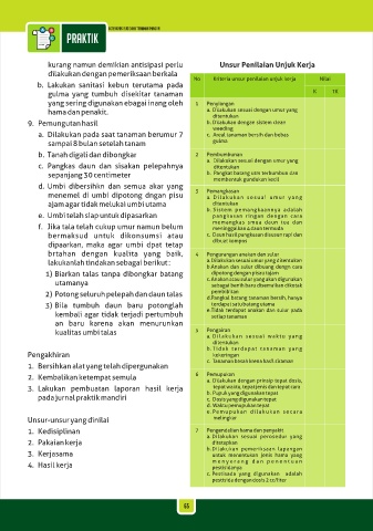 No Kriteria unsur penilaian unjuk kerja Nilai