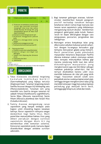 No Kriteria unsur penilaian unjuk kerja Nilai 3. Bagi tanaman golongan araceae, kalsium