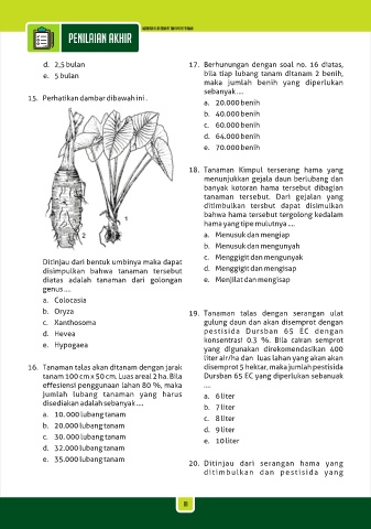16. Tanaman talas akan ditanam dengan jarak disemprot 5 hektar, maka jumlah pestisida