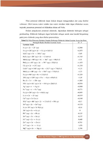 Tabel 3.1 Nilai Potensial Reduksi Standar Beberapa Elektrode dalam Larutan Asam dan Basa
