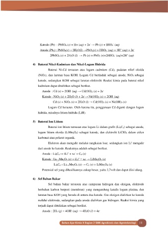 Katode (Pb) : PbSO4 (s) + H+ (aq) + 2e → Pb (s) + HSO4 (aq)