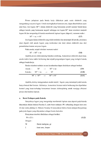 logam M dan nengendap di katoda membentuk lapisan logam (deposit), menurut reaksi :