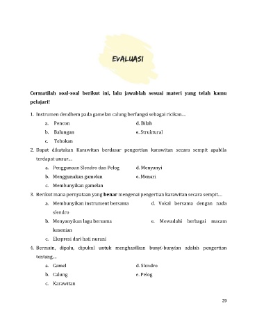 3. Berikut mana pernyataan yang benar mengenai pengertian karawitan secara sempit....