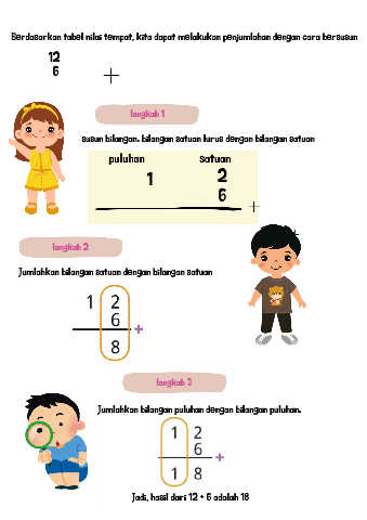 Berdasarkan tabel nilai tempat, kita dapat melakukan penjumlahan dengan cara bersusun