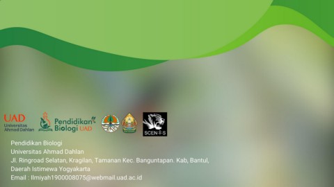 Pendidikan Biologi Universitas Ahmad Dahlan Jl. Ringroad Selatan, Kragilan, Tamanan Kec. Banguntapan. Kab, Bantul, Daerah Istimewa Yogyakarta Email : Ilmiyah1900008075@webmail.uad.ac.id