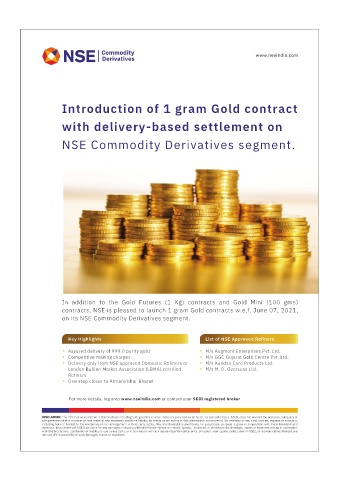 contracts, NSE is pleased to launch 1 gram Gold contracts w.e.f. June 07, 2021,