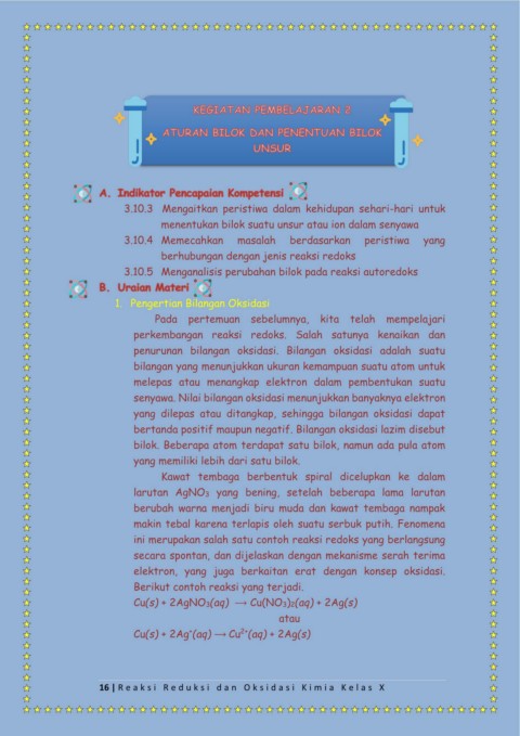 16 | R e a k s i R e d u k s i d a n O k s i d a s i K i m i a K e l a s X