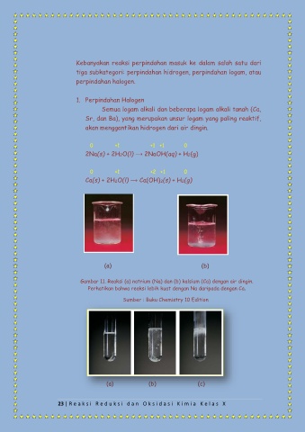 Gambar 11. Reaksi (a) natrium (Na) dan (b) kalsium (Ca) dengan air dingin.