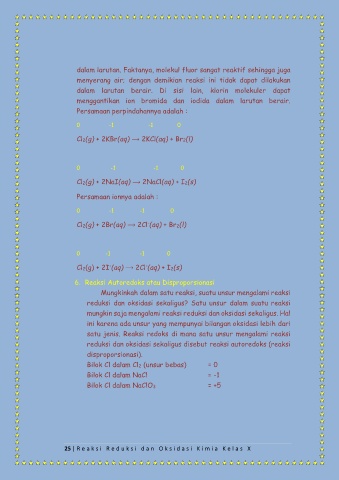 dalam larutan berair. Di sisi lain, klorin molekuler dapat