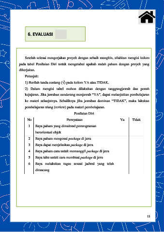 pada tabel Penilaian Diri untuk mengetahui apakah sudah paham dengan proyek yang