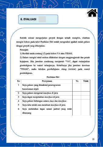 “TIDAK”, maka lakukan pembelajaran ulang (review) pada materi