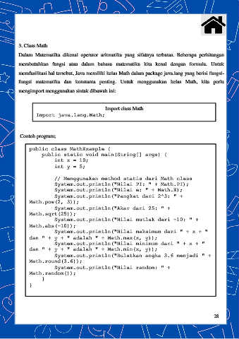 fungsi  matematika  dan  konstanta  penting.  Untuk  menggunakan  kelas  Math,  kita  perlu