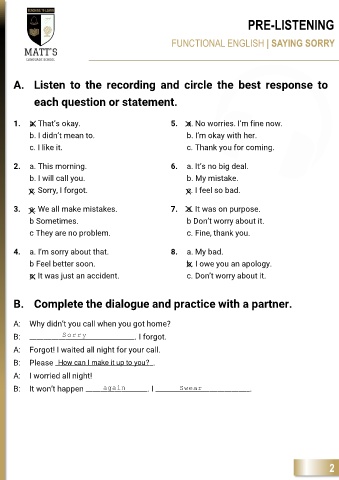 1. a. That’s okay. 5. a. No worries. I’m fine now.