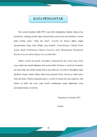 fisika tentang materi “Suhu dan Kalor”. E-modul ini disusun dalam rangka
