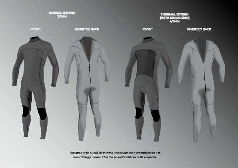 NORMAL EXTEND THERMAL EXTEND 3/2MM (WITH SHARK SKIN) 4/3MM FRONT INVERTED BACK FRONT INVERTED BACK Designed with durability in mind, this tough, no-nonsense series has been fittingly named after the powerful African buffalo species.