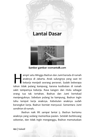 Badrun naik lift sampai lantai 5. Badrun bertemu