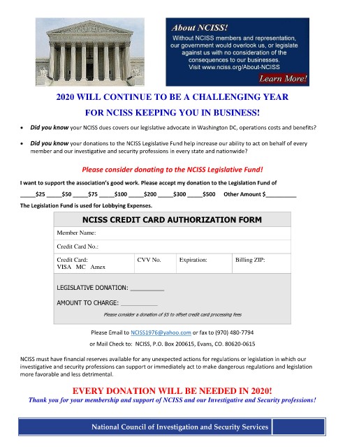 Thank you for your membership and support of NCISS and our Investigative and Security professions!