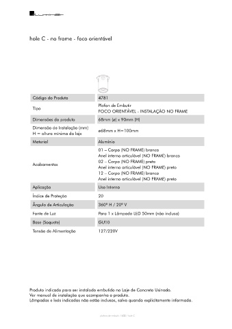hole C - no frame - foco orientável hole C - com borda - foco orientável