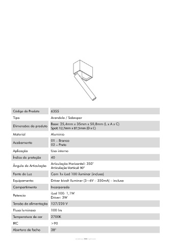 Equipamento: Driver bivolt Iluminar (3~6V – 350mA) – incluso Equipamento: Driver bivolt Iluminar (3~6V – 350mA) – incluso