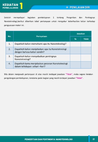 Nanoteknologi,berikut diberikan tabel pertanyaan untuk mengukur keberhasilan kalian terhadap