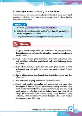 5.  Hafalan Q.S. an-Nisā’/4: 59 dan Q.S. an-Naḥl/16: 64