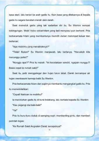 kasa steril, lalu berlari ke arah gadis itu. Kain kasa yang ditekannya di kepala