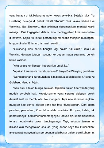 "Guisheng, kau harus bangkit lagi dalam hal cinta," kata Bai
