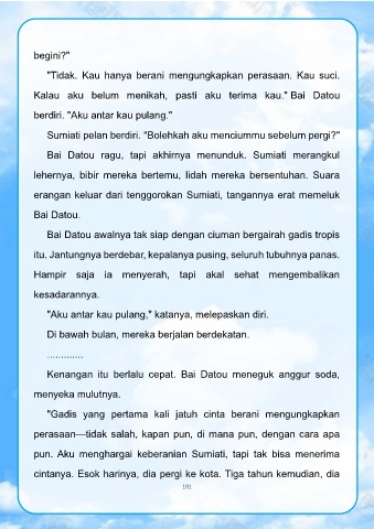 "Tidak. Kau hanya berani mengungkapkan perasaan. Kau suci.