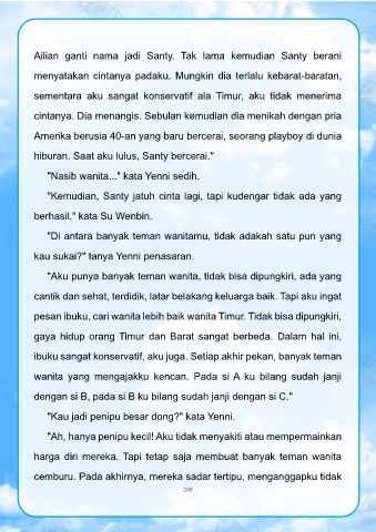 "Kemudian, Santy jatuh cinta lagi, tapi kudengar tidak ada yang