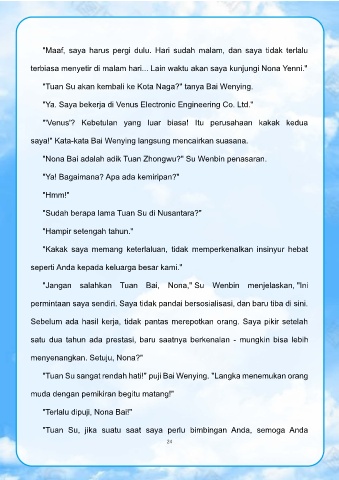 "Jangan salahkan Tuan Bai, Nona," Su Wenbin menjelaskan, "Ini