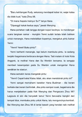 Yenni berhenti menangis, tapi belum membuka pintu. Ia sedang