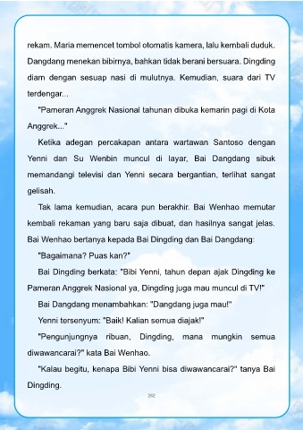 rekam. Maria memencet tombol otomatis kamera, lalu kembali duduk.