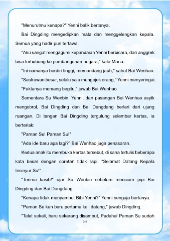 ruangan. Di tangan Bai Dingding tergulung selembar kertas, ia