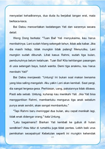Bai Datou menceritakan kedatangan Yati dan sarannya secara